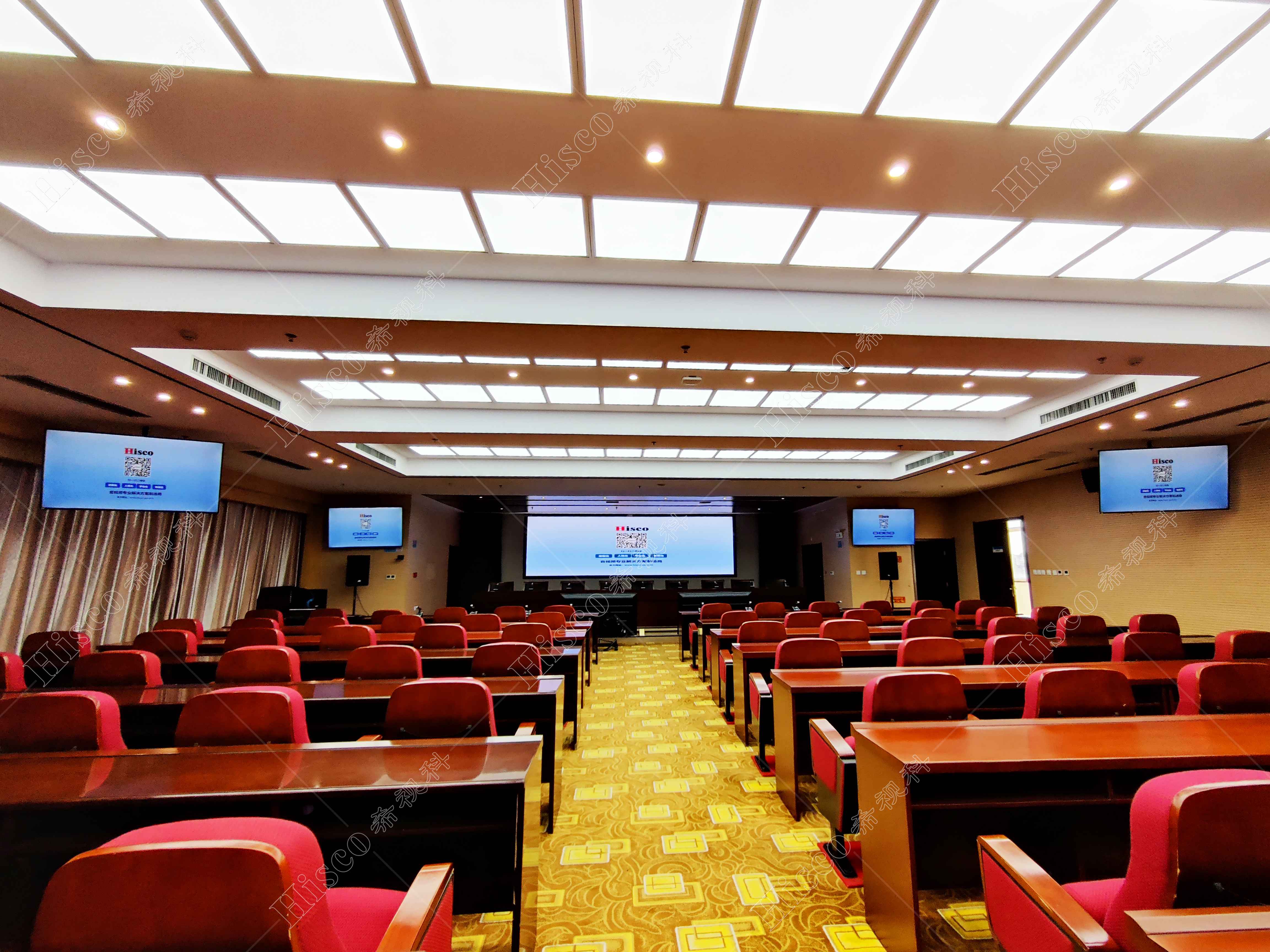 会议室内需要需要做扩声系统、会议系统、显示系统,智能化系统;满足日常开会的讨论、发言等等。综合礼堂的设计,追求语言的清晰图和饱和度,声压级级要求达到国家厅堂扩声系统一级标准。同时预留了丰富的接口,方便以后系统的扩展,实现整个系统的强大功能。同时有演出用的舞台,配置了专业的舞台灯光系统和演出扩声系统,加了超低音音箱和效果器,追求声音的饱满度和浑厚感,能够满足文艺演出,会议报告,庆典活动召开等功能。